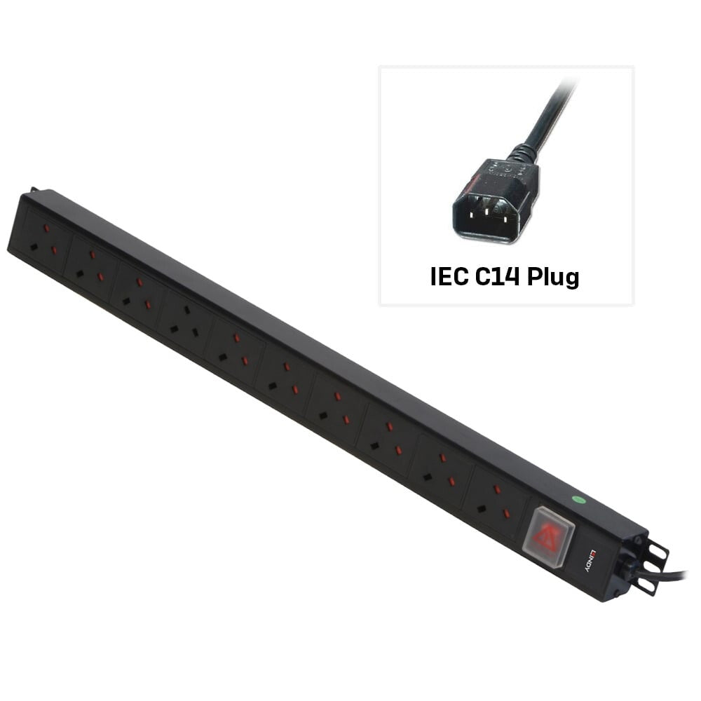 Lindy 10 Way UK Mains Sockets, Vertical PDU with IEC Mains Cable