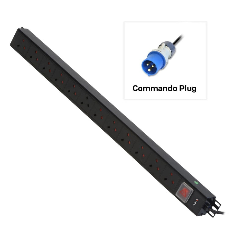 Lindy 12 Way UK Mains Sockets, Vertical PDU with Commando Plug