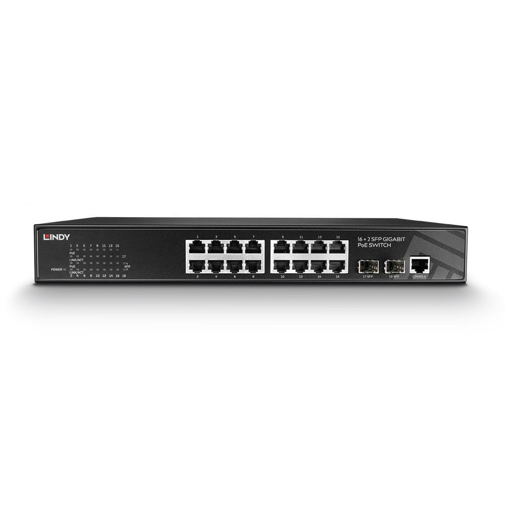 Lindy 16 Port + 2 SFP Gigabit Managed Switch PoE