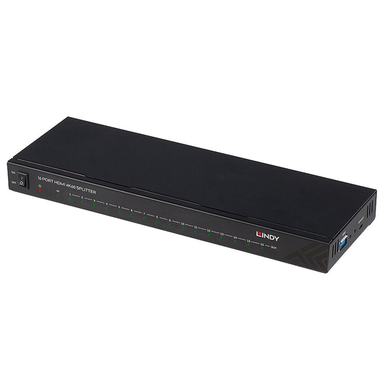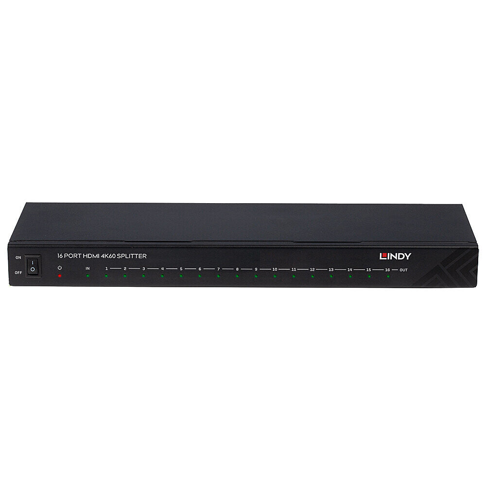 The Lindy 16 Port HDMI Splitter is a professional solution for distributing high quality HDMI content simultaneously across 16 seperate displays, when connected to a single HDMI source such as media players, PCs or set top boxes.