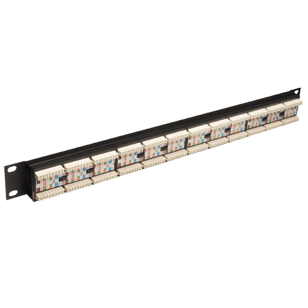 - Dual type terminal blocks (for Krone/110 compatible punchdown tools) and dual T568A/T568B colour coding