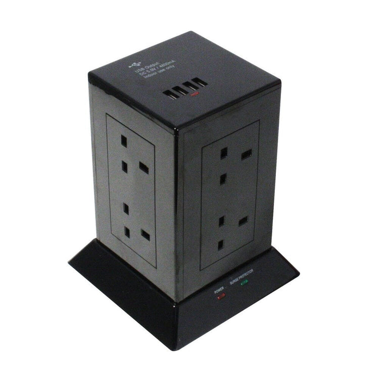 This 8 way extension strip is ideal for replacing existing trailing power strips to create neater, safer computer, AV and IT installations. Its vertical design features 8 sockets which allow a multitude of devices to be connected without the mess and hazard of using multiple power strips and the inevitable tangle of cables. Furthermore, protection for your sensitive computer equipment is provided by a built-in surge protector. It also features four handy USB ports which output a maximum of 2.4A on each port for connecting USB devices, with a total maximum of 4.8A across all four ports.