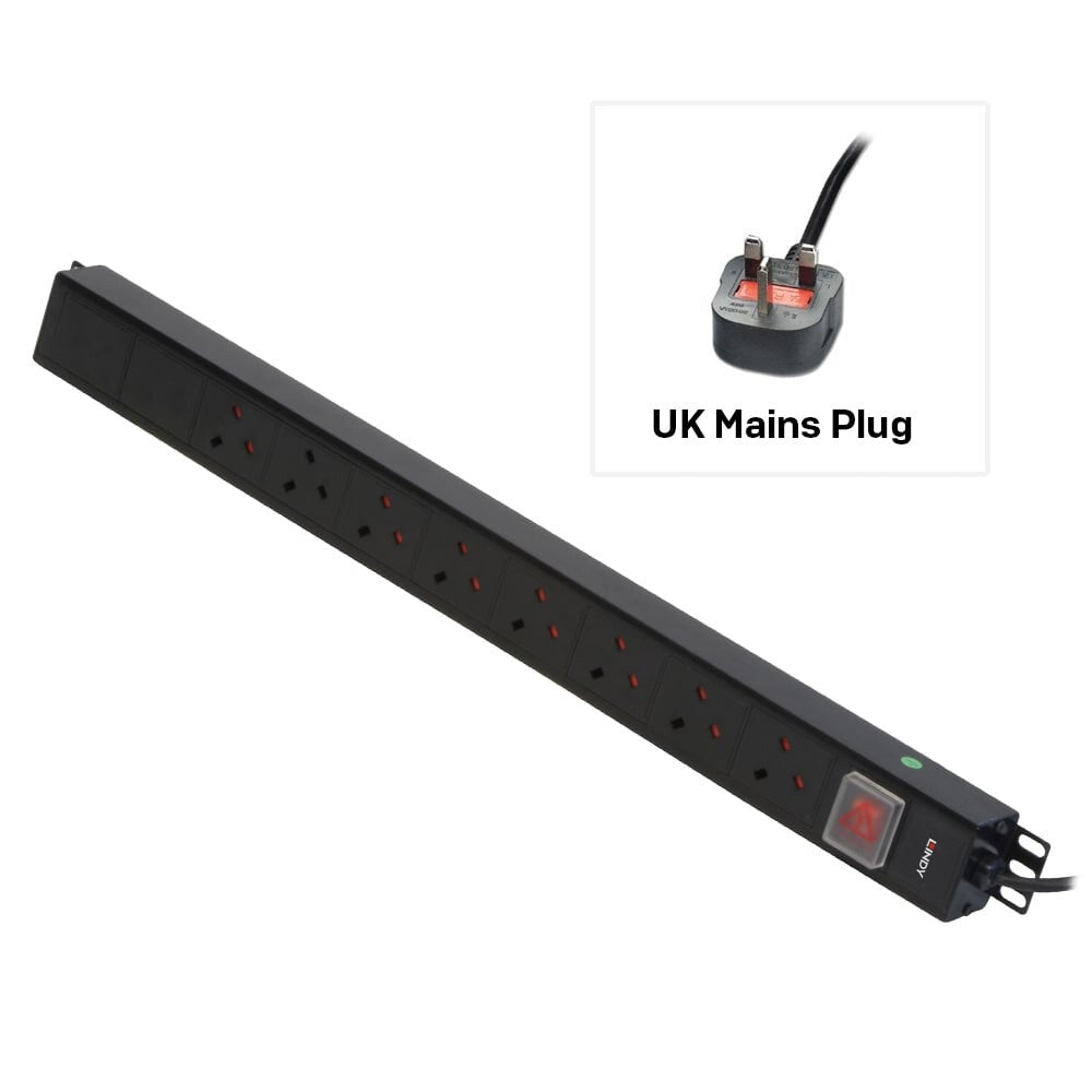 Lindy 8 Way UK Mains Sockets, Vertical PDU with UK Mains Plug