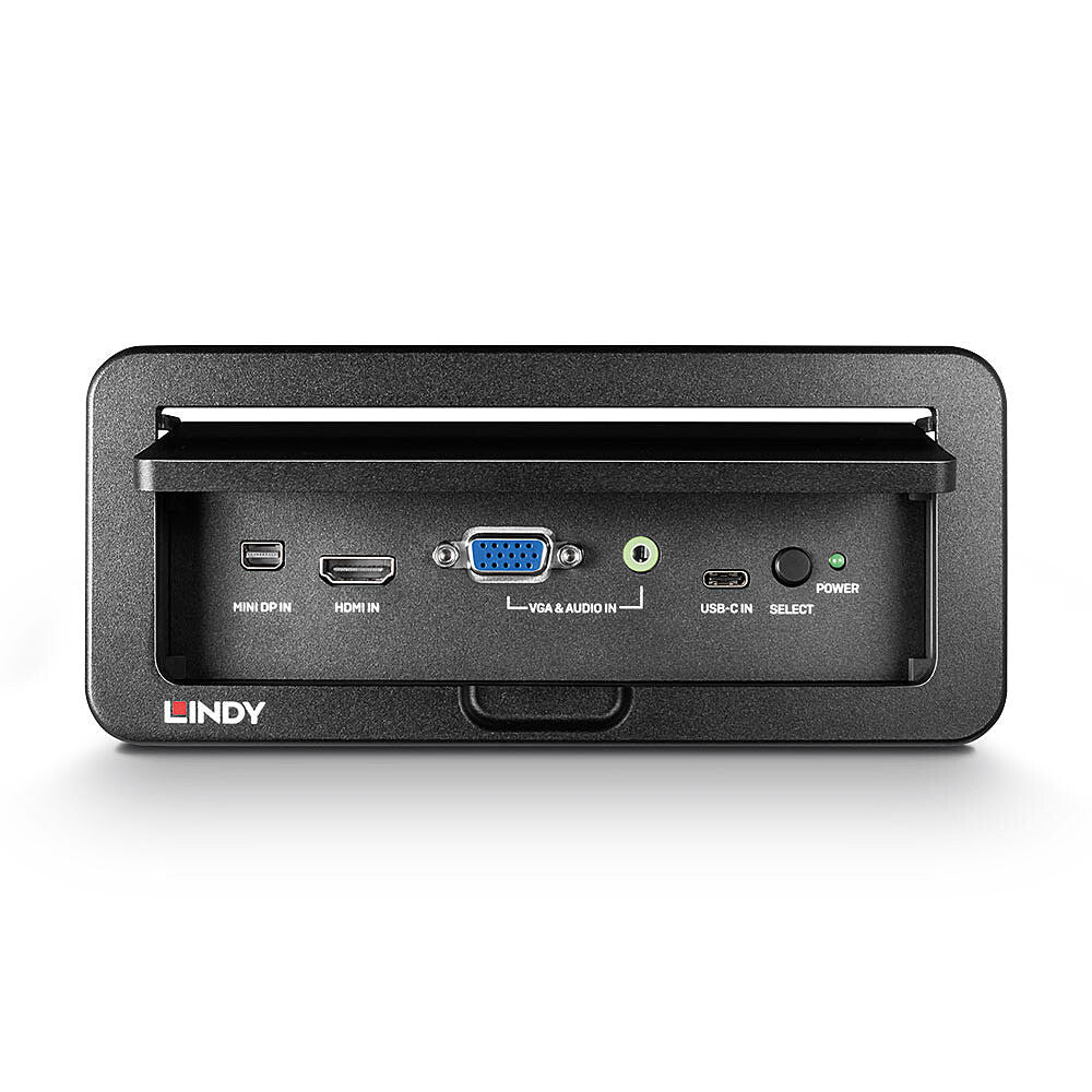 The Lindy Multi-format conference table switch is a premium design, multi-function solution for providing hassle-free control over multiple digital and analogue source devices when connected to a single HDMI display or projector. This solution ensures the maximum possible resolution is displayed using automatic conversion and scaling to HDMI.