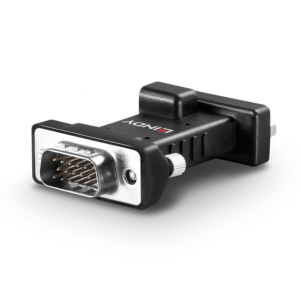 The Lindy VGA EDID Emulator is designed for systems that require EDID signals to be continuously provided without interruption and helps overcome EDID related problems which can occur when using AV/KVM extenders, switches and splitters. It can also be used in place of a monitor to keep the graphics card of a PC or server awake for remote access via IP. With support for resolutions up to 1920x1200@60Hz, the emulator is suitable for use with legacy PCs and displays. When used with the Lindy EDID recorder (32120) this device can provide cloned EDID information to the graphics card.