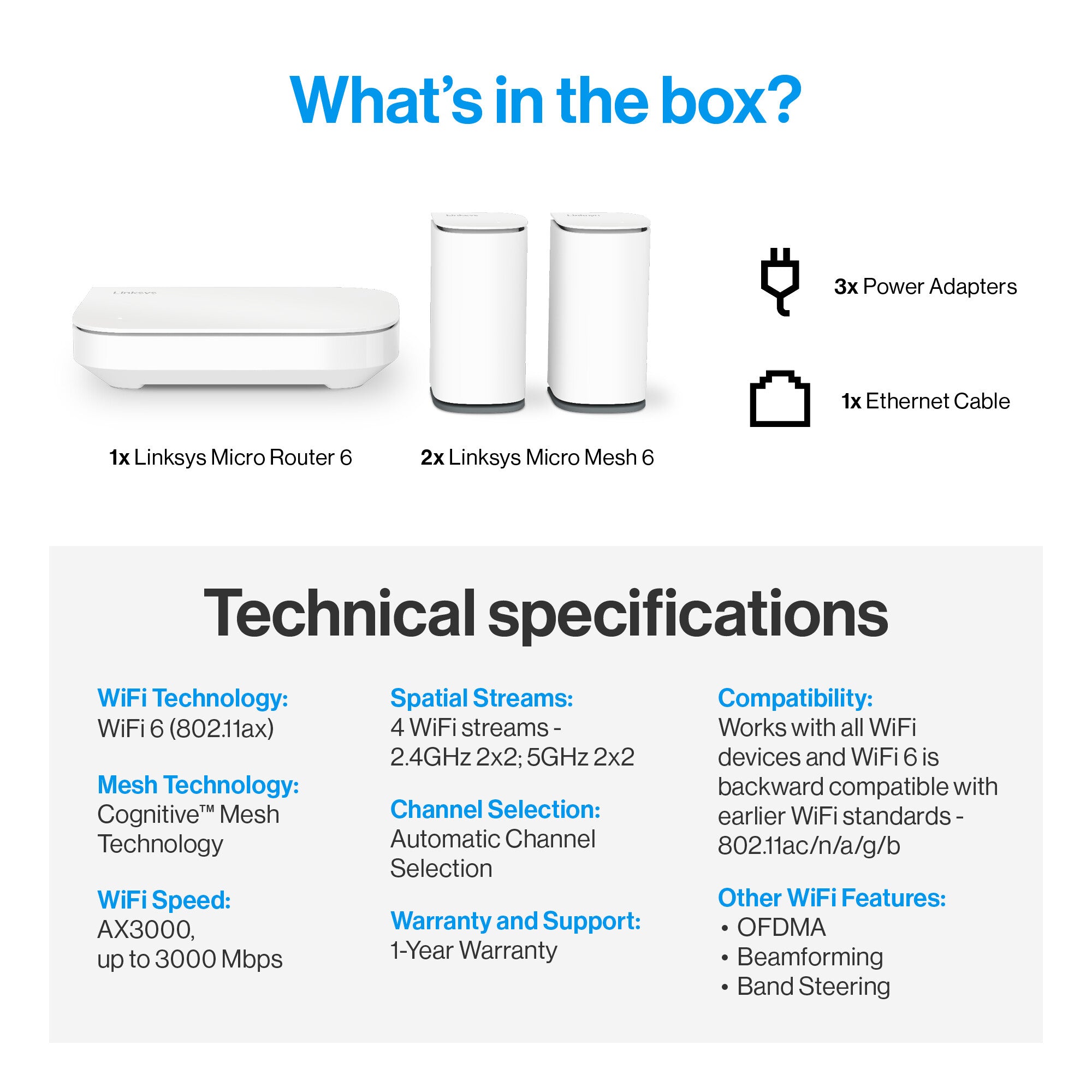 Linksys Velop Micro 6 Mesh System – Dual-Band WiFi 6 AX3000 (3-pack)