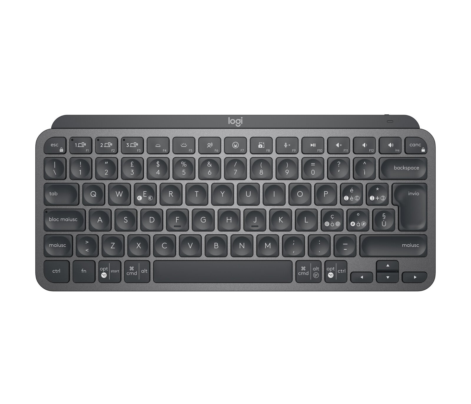 The plastic parts in MX Keys Mini for Business include post consumer recycled plastic—30% for Graphite and 12% for Pale Grey—to give a second life to end-of-life plastic from old consumer electronics and help reduce our carbon footprint.
