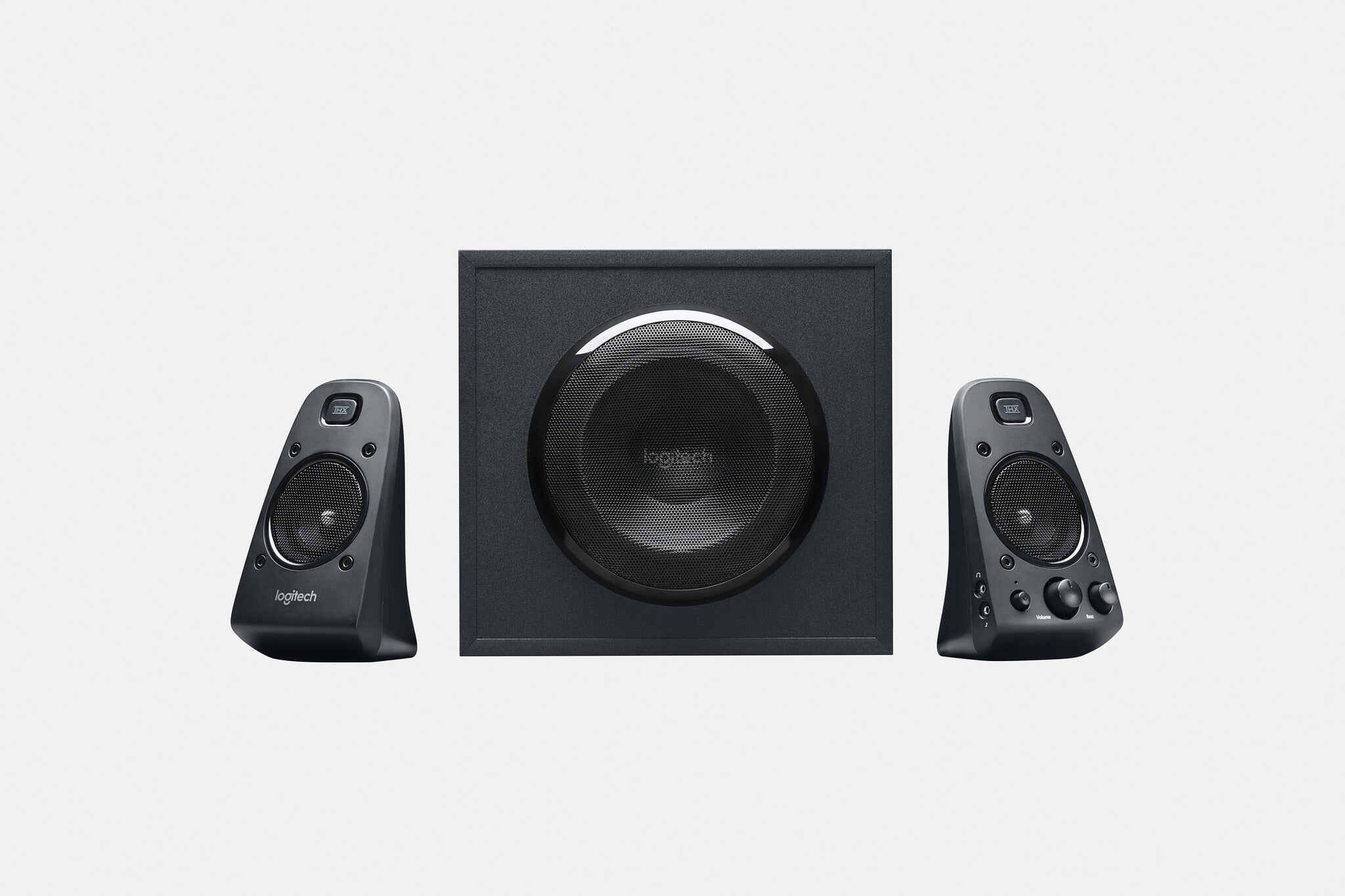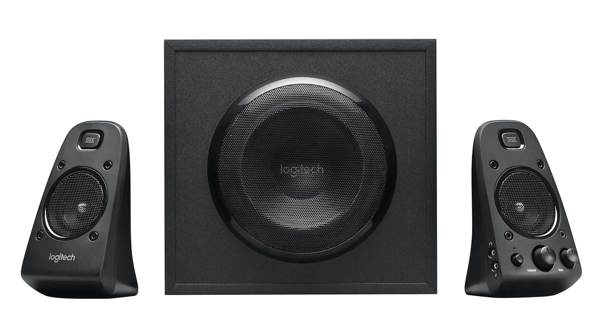 Logitech® Speaker System Z623. For big, bold, 2.1 sound. THX® Certified means quality you can count on-these speakers have met strict performance standards to achieve THX certification. You'll hear-and feel-immersive audio from 200 watts (RMS) of power that brings music, movies, and games to life. Multiple inputs-and a built-in headphone jack-make it easy to get great sound from up to three audio devices. Easy, two-satellite setup and a powerful subwoofer give you big sound-even in large spaces. And integrated controls put you in command-dial the volume and bass up or down to customize your listening experience.