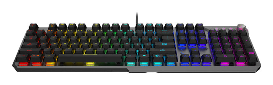 Featuring an ergonomic floating keycap design that keeps hands and wrists in a natural, comfortable position, reducing strain during extended gaming sessions. Adjustable feet allow you to tilt the keyboard for a preferred wrist angle, enhancing comfort and reducing fatigue. Additionally, built-in cable routing pathways keep your setup tidy by preventing peripheral cables, like wired headsets, from cluttering your gaming space.