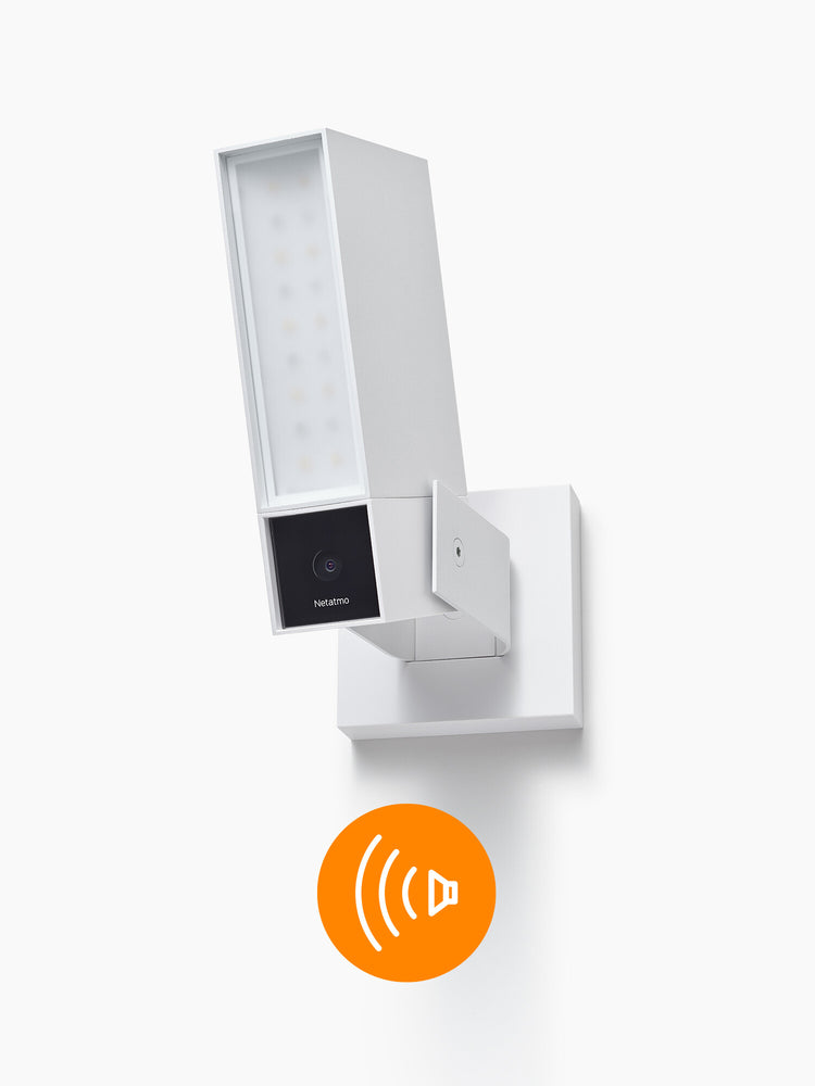 Your Outdoor Camera is equipped with a built-in smart lighting system. During an alert, a floodlight is activated to help deter intruders. Choose manual activation using the app or automatic switch-on. The system can also light your path at night.