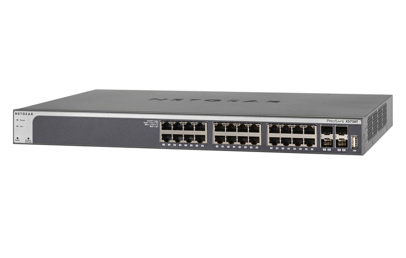 The NETGEAR XS708T, XS716T, XS728T, and XS748T are powerful Smart Managed Switches that come with 8, 16, 24, or 44 10-Gigabit Copper ports and either 2 Shared (Combo) Copper/SFP+ ports (XS708T/XS716T) or 4 additional Dedicated SFP+ ports (XS728T/XS748T) for 10G Fiber links. The NETGEAR 10-Gigabit Smart Managed Switches are purposely designed as a cost-effective way to provide 10G connections to 10G-capable servers and NAS (Network Attached Storage) systems. They can be used at the “center of a small business network” or as an aggregation / access switch in a larger organization including workgroup access, connecting to a 10‑Gigabit NETGEAR Fully Managed Switch on one end and extending the 10G connections to the edge. The XS708T and XS716T are also ideal for smaller workgroups that need high bandwidth for sharing, collaborating, editing, and publishing high-density content like video or animation.