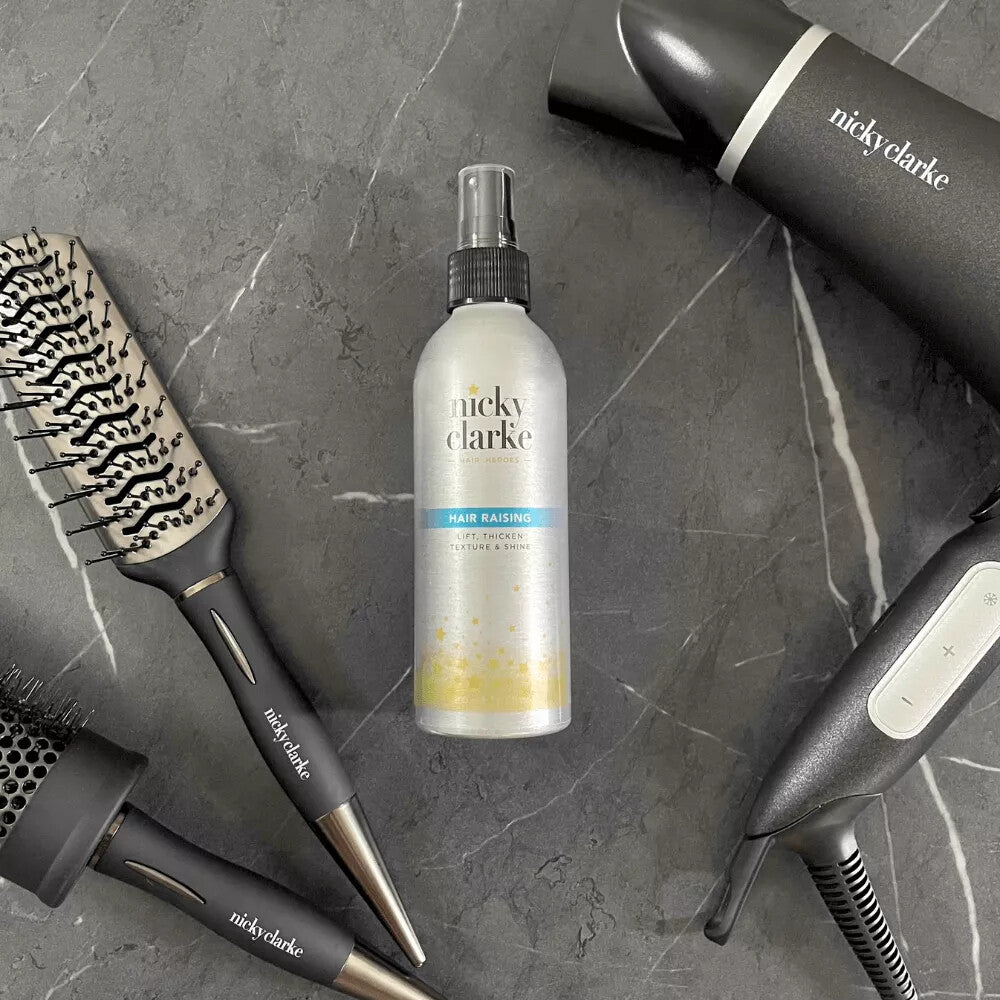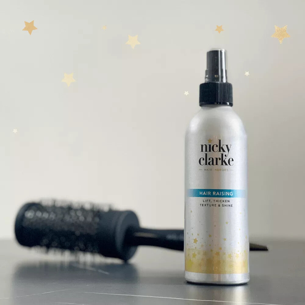 Nicky Clarke Hair Raising, Lift, Thicken & Shine Spray is our most versatile product suitable for all hair types, it allows the hair to be worked or styled leaving absolutely no residue. Our unique formula lifts the hair from the roots reviving, giving body to the hair and keeping its natural shine.