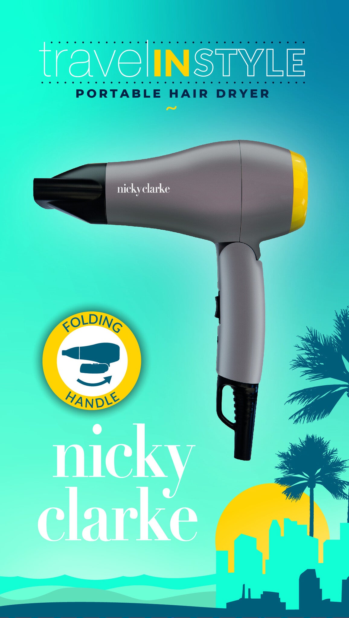 A must-have travel essential. With a 1200W motor it gives you all the drying and styling performance you need while on holiday, a weekend away or even at the gym. Light weight and compact with its foldaway handle, its a stylish portable dryer for styling on the go. With two variable speeds and temperature settings it suits all hair types. Plus the dual voltage gives you great performance wherever you are.