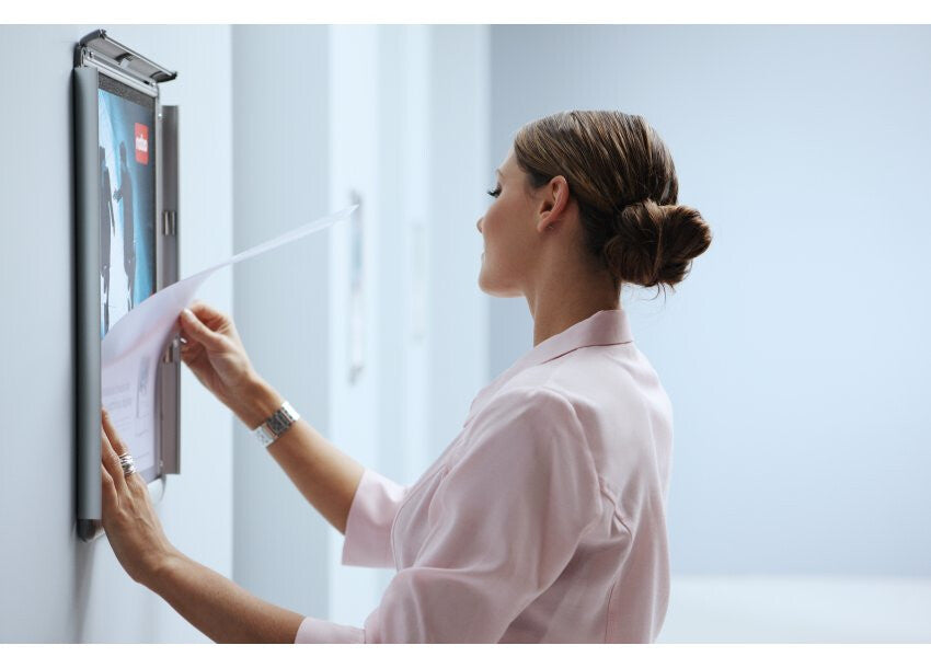 - Wall-mounted A1 snap frame ideal for offices, educational settings, hospitals, hospitality and more.