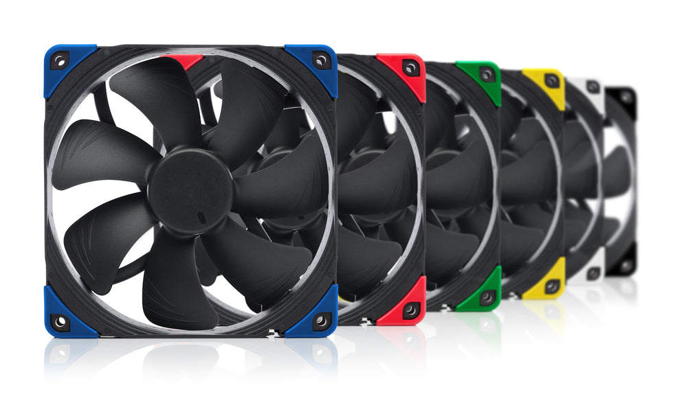 The NF-A14 PWM chromax.black.swap comes with 4 black, white, red, blue, green and yellow NA-AVP1 anti-vibration pads respectively. By combining the various colours with black or leaving off the pads on one side, the fan can be coordinated with most popular build colour schemes out of the box. Additional NA-SAVP1 sets for outfitting both sides in one colour can be purchased separately.