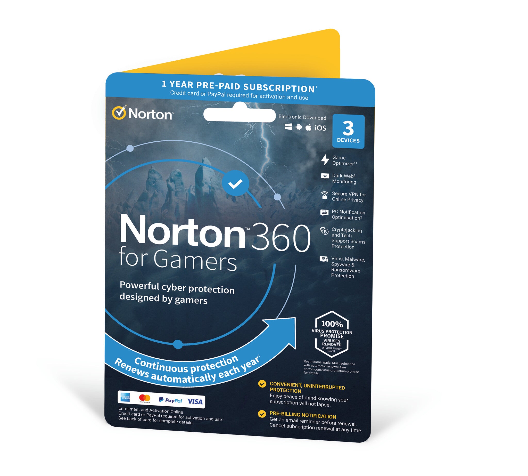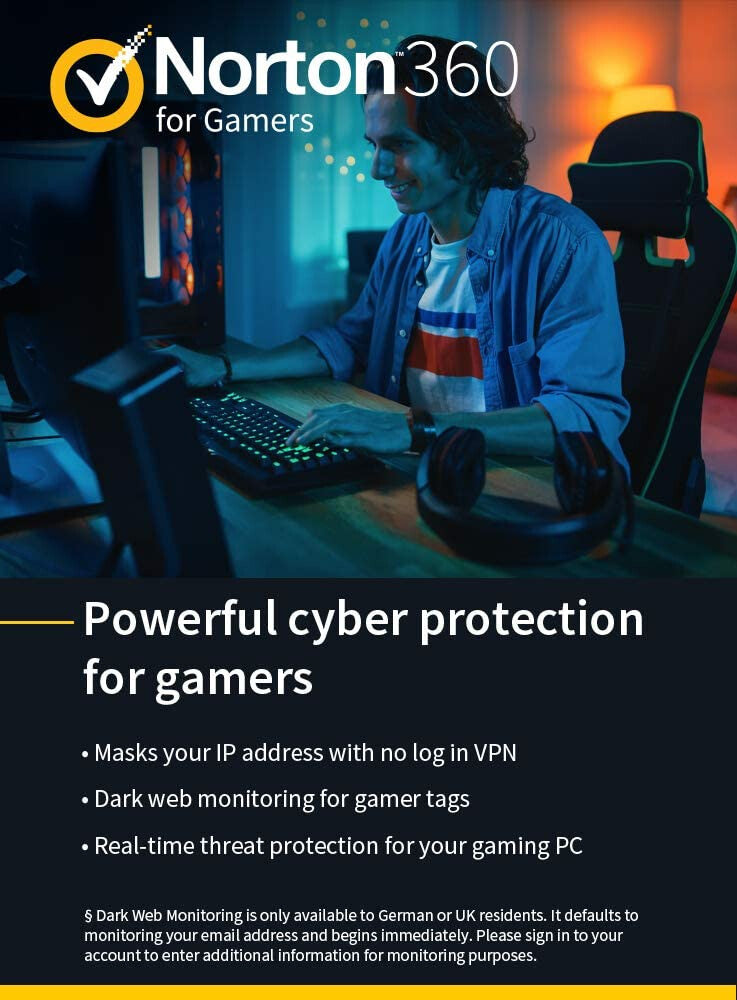 Norton 360 for Gamers | Antivirus software | 3 Devices & 1-year subscription with automatic renewal | Secure VPN | Dark Web Monitoring | Password Manager | Game Optimiser | PC/Mac/iOS/Android