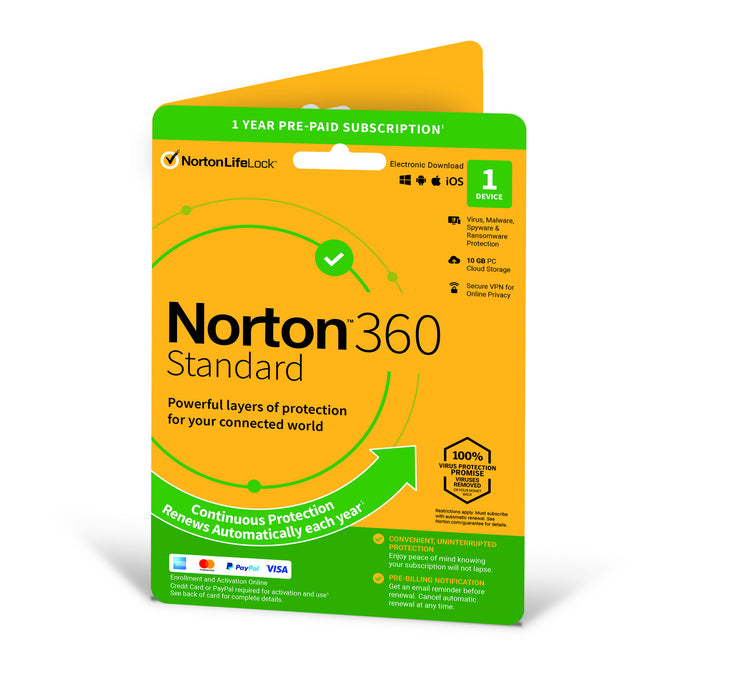 Norton 360 Standard | 1 Device | 1 Year Subscription with Automatic Renewal | Includes Secure VPN and Password Manager | PCs, Mac, Smartphones and Tablets