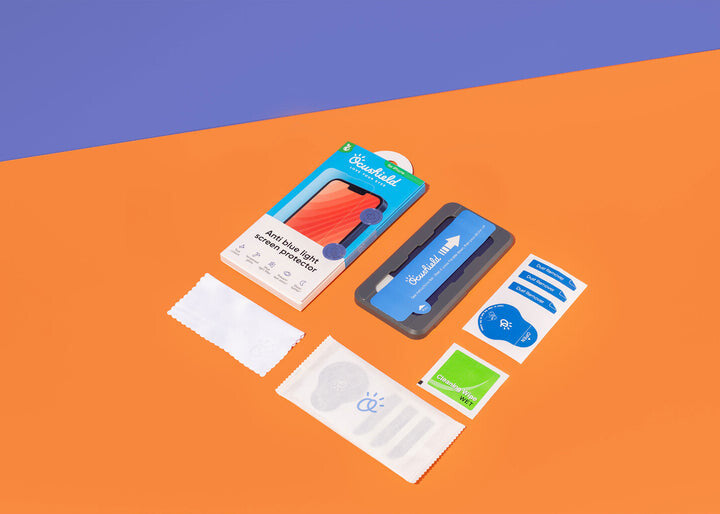 - Anti-blue light screen protector (tempered glass, won’t affect screen colours)