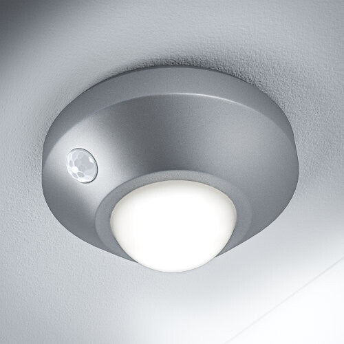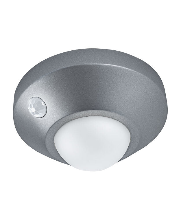 The battery-operated multi-function luminaire NIGHTLUX Ceiling shines cool-white light both indoors and outdoors. The luminaire is equipped with modern LED technology, as well as an additional day/night sensor and motion detector. The NIGHTLUX Ceiling can be effortlessly installed on just about any surface, making it ideal as a luminaire in the cloakroom or as additional room lighting. You can even use this energy-saving luminaire in the entryway or as a night-light. Delivery includes three AA batteries, and the multi-function luminaire comes in either white or silver.