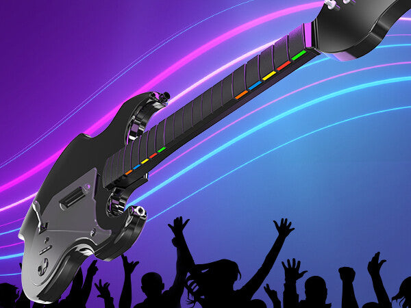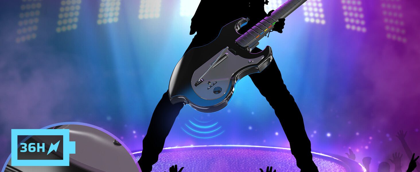 Rock On with the RIFFMASTER wireless guitar controller! The newest guitar in the market allows you to play music like a true rock star now on Fortnite Festival and Rock Band 4. With a unique design that is suitable for both left and right handed guitarists, everybody has a chance to dominate the competition.