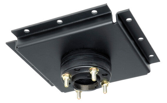 Structural ceiling plate includes integral high density rubber decoupler assembly to help prevent vibrations from damaging the equipment mounted. Unit has 1 1/2-11.5 NPT fitting for attachment of fixed or adjustable length extension column. Ceiling plate attaches to concrete beam, slab, or other structural member. Model DCS200 supports single screen installations while DCS400 supports multi screen installations (see Peerless Multi Displays).