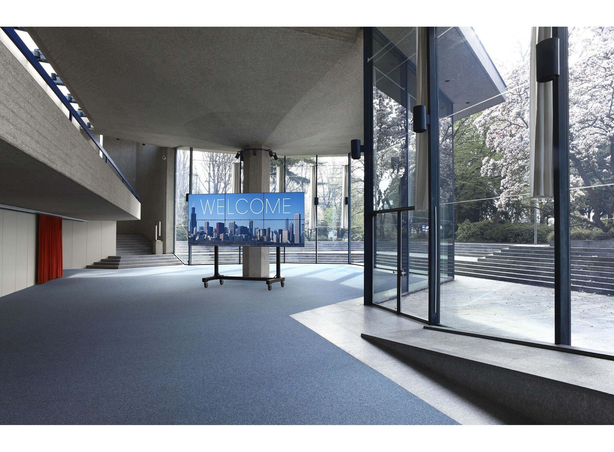 Peerless-AV takes video wall carts to a new level of innovation. With this new modular design, a 2x2 or 3x2 video wall cart configuration can be built with just a single SKU. This Modular Video Wall Cart offers an 8-point micro-adjustment to create a seamless alignment without the need of tools. With a five-inch lockable caster, the cart becomes secure for safe and easy movement over various flooring surfaces. Designed for a quick set-up and tear down, the cart features a quick-connect latch for adaptors, allowing automatic engagement with mounting rails. Media storage and cable management create a sleek appearance for any application setting. With an overall weight and shipping cost reduction, this Portable Video Wall Cart makes this the ultimate video wall cart solution.