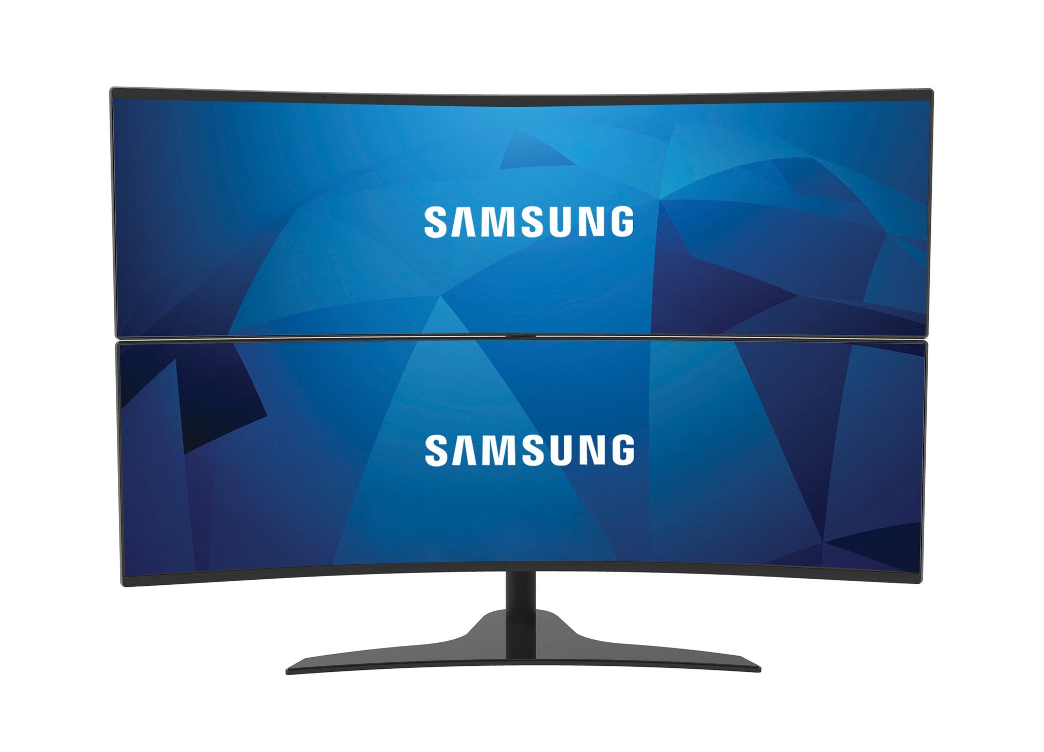 Peerless-AV's 1x2 Freestanding Desktop Stand offers a secure, functional and convenient mounting solution for the 43" and 49" Samsung Super Ultra-Wide Curved Monitors, ideal for desk traders, control rooms and gaming applications. The unique design allows (2) 43" or (2) 49" Samsung monitors to be stacked in a 1x2 layout to maximize the ability to view multiple sources simultaneously. A convenient quick release function allows the user to service each monitor individually, which minimizes work flow disruptions. The slim base provides a sturdy support for the mounted monitors and a clean look ideal for any work space.