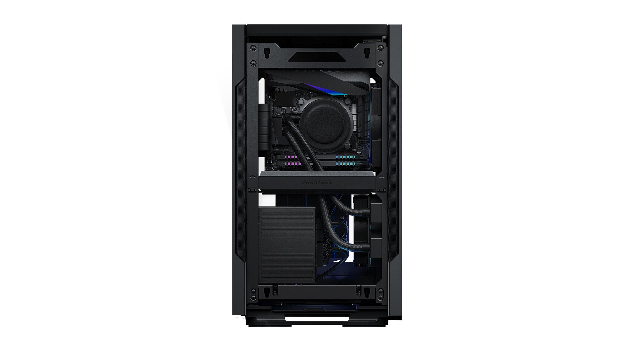 The Evolv Shift 2 builds on the unique form factor of the original Evolv Shift and brings a compact chassis that packs plenty of power and is extremely space efficient with its small footprint. D-RGB lighting has been integrated in a subtle and stylish way and all rear IO is concealed yet easily accessible with a touch on the top panel.