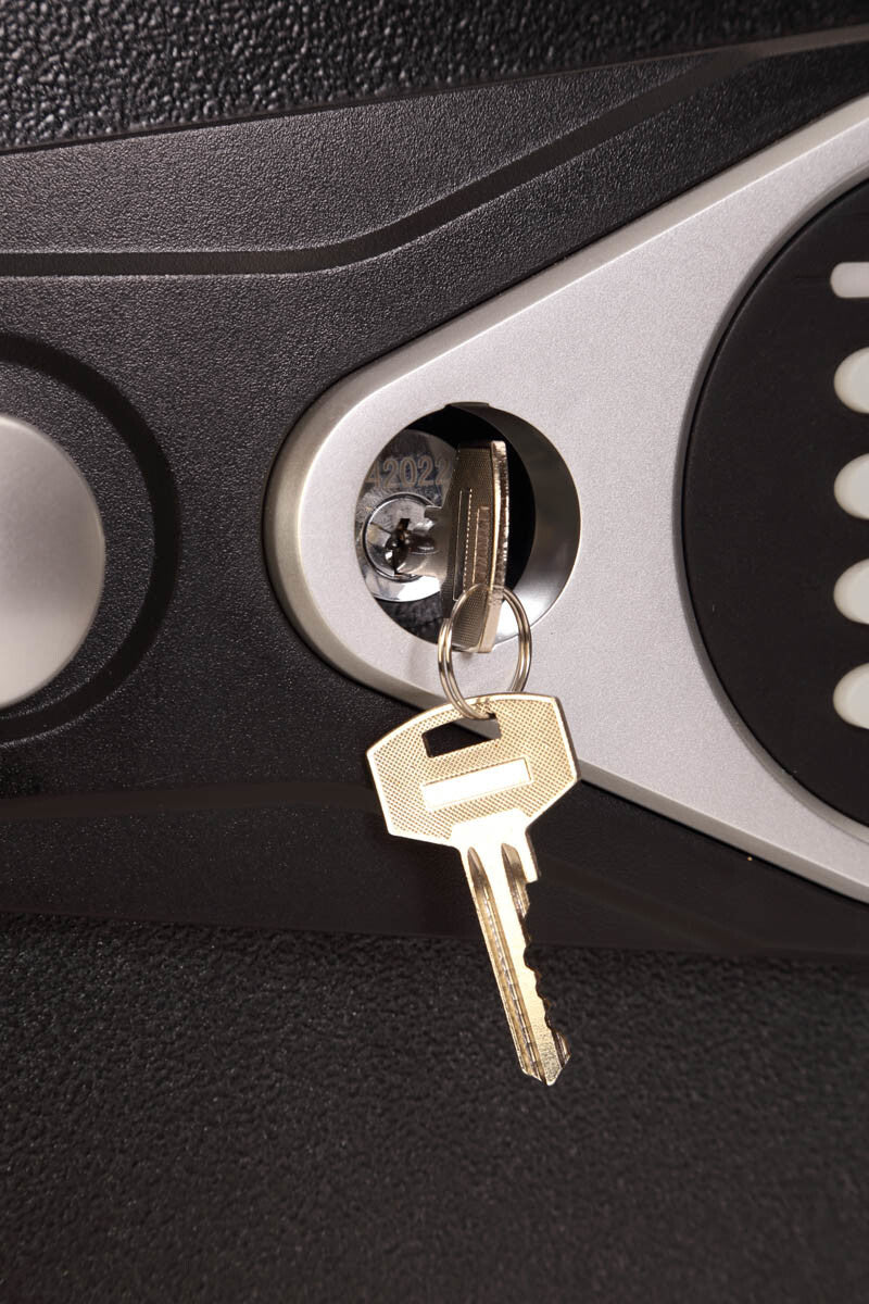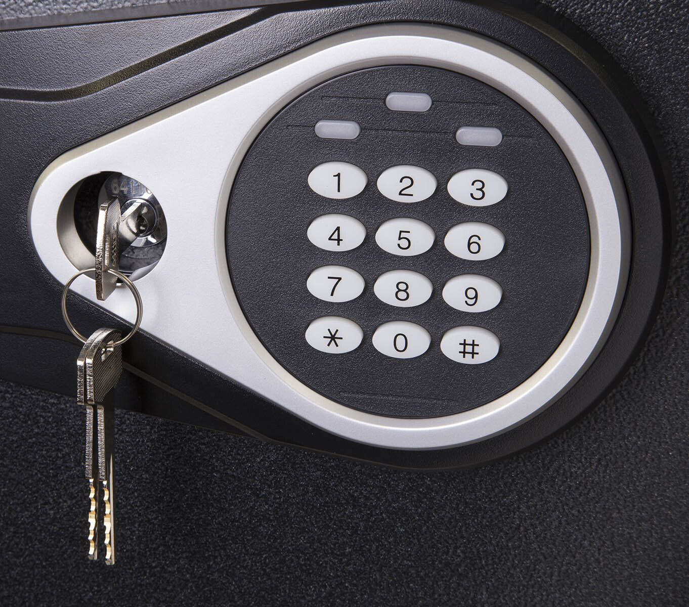 - LOCKING Fitted with an advanced user friendly electronic lock with illuminating keypad, built-in alarm and key override facility (2 keys supplied)