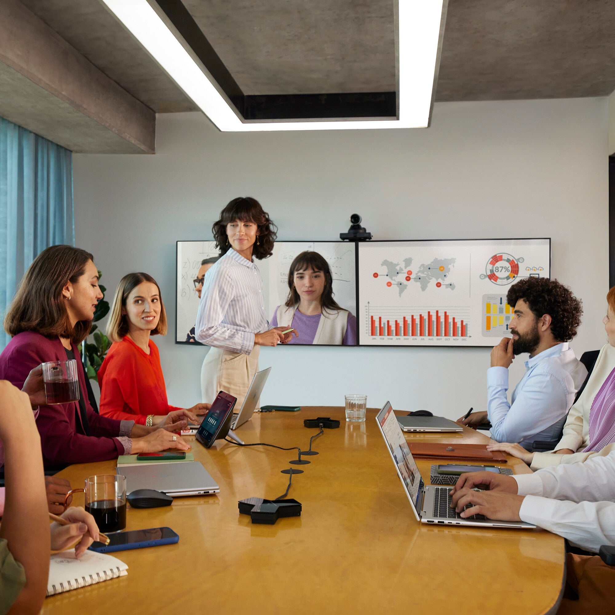 - Whether in person or remote, keep your teams engaged no matter where they’re seated. Make sure they pick up on every detail with true-life definition including small gestures and expressions even in large rooms with a 12x optical zoom.