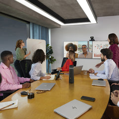 Keep presentations engaging with the Poly Studio E60 smart MPTZ optical zoom camera. The main presenter is always in frame, and every person in the room is shown with exceptional accuracy, even at the far end. With every detail captured, presentations are easier to follow.