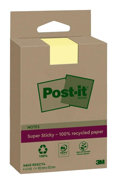 Post-it® Recycled Super Sticky Notes are made from 100% recycled paper and are recyclable.