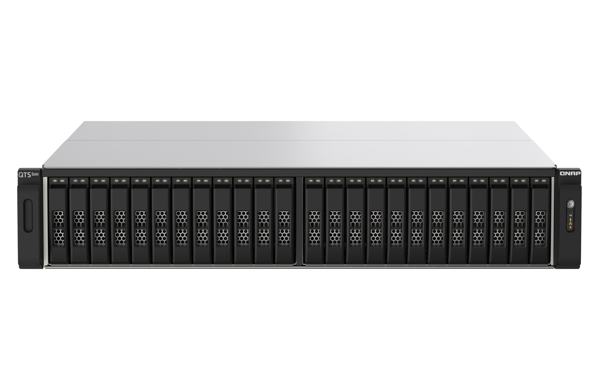 The NVMe all-flash TS-h2490FU is designed for providing extreme performance with high cost-efficiency. Featuring 24 U.2 NVMe Gen 3 x4 SSD bays, the TS-h2490FU delivers up to 661K / 245K random read/write IOPS with ultra-low latency. The ZFS-based QuTS hero operating system supports inline data deduplication and compression for reducing I/O and SSD storage consumption, which significantly extends SSD lifespan with a higher price-performance ratio for all-flash storage arrays. Coupled with near-unlimited snapshots, real-time SnapSync, and petabyte-scale storage expansion capabilities, the