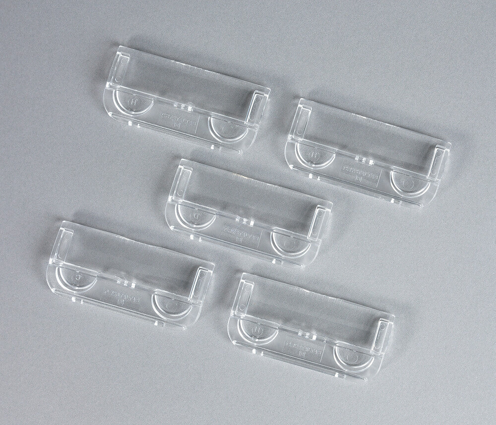 - Clear plastic ensures optimum visibility of file name and protects paper label from wear and tear