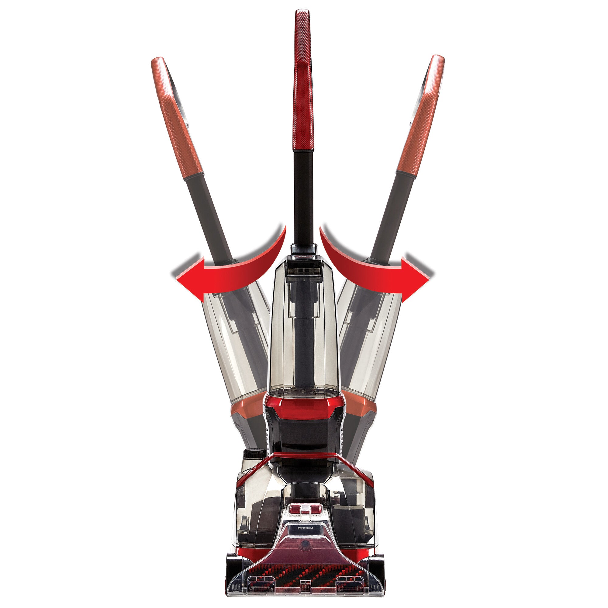 Eliminating tough dirt, stains, spills, odours and messes, the upright cleaner pivots, handles and swivels to clean backwards and forwards like a vacuum. The deep cleaning suction power, revolving brush penetration, squeegee nozzle and dual action formula solutions are tough on dirt but gentle enough for all surfaces.