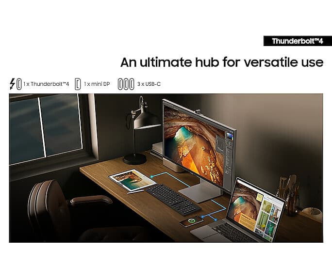 A 5K monitor that connects to your favorite Windows and Mac devices with DisplayPort and Thunderbolt 4 connectivity. The new Thunderbolt 4 compatibility means you can transfer data more reliably.