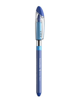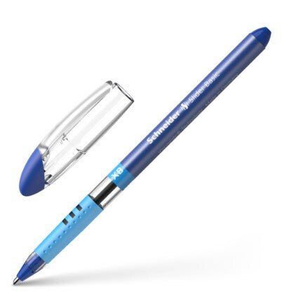 Ballpoint pen with Viscoglide® technology for extraordinarily smooth, gliding writing. Writing colour blue. Extra Broad line width (XB). The ink dries quickly - even on smooth paper - and is smudge proof when highlighting it later on. Slimline design with an attractively decorated transparent barrel and clip cap that fits neatly on either end of pen. The rubberised grip zone provides a secure hold for relaxed writing. The wear-resistant stainless steel tip guarantees that the large ink supply can be fully used and does not smear. The Slider Basic is produced CO2 neutrally.