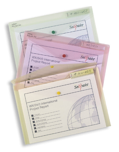 A range of low-cost, durable polypropylene files with an attractive 'Superline' finish. Each Polyfile™ features a Snopake press-stud closure to keep the contents safe and secure. Snopake Polyfiles™ are available in a choice of Classic light colours. Files so beautiful they should never be locked away in filing cabinets.