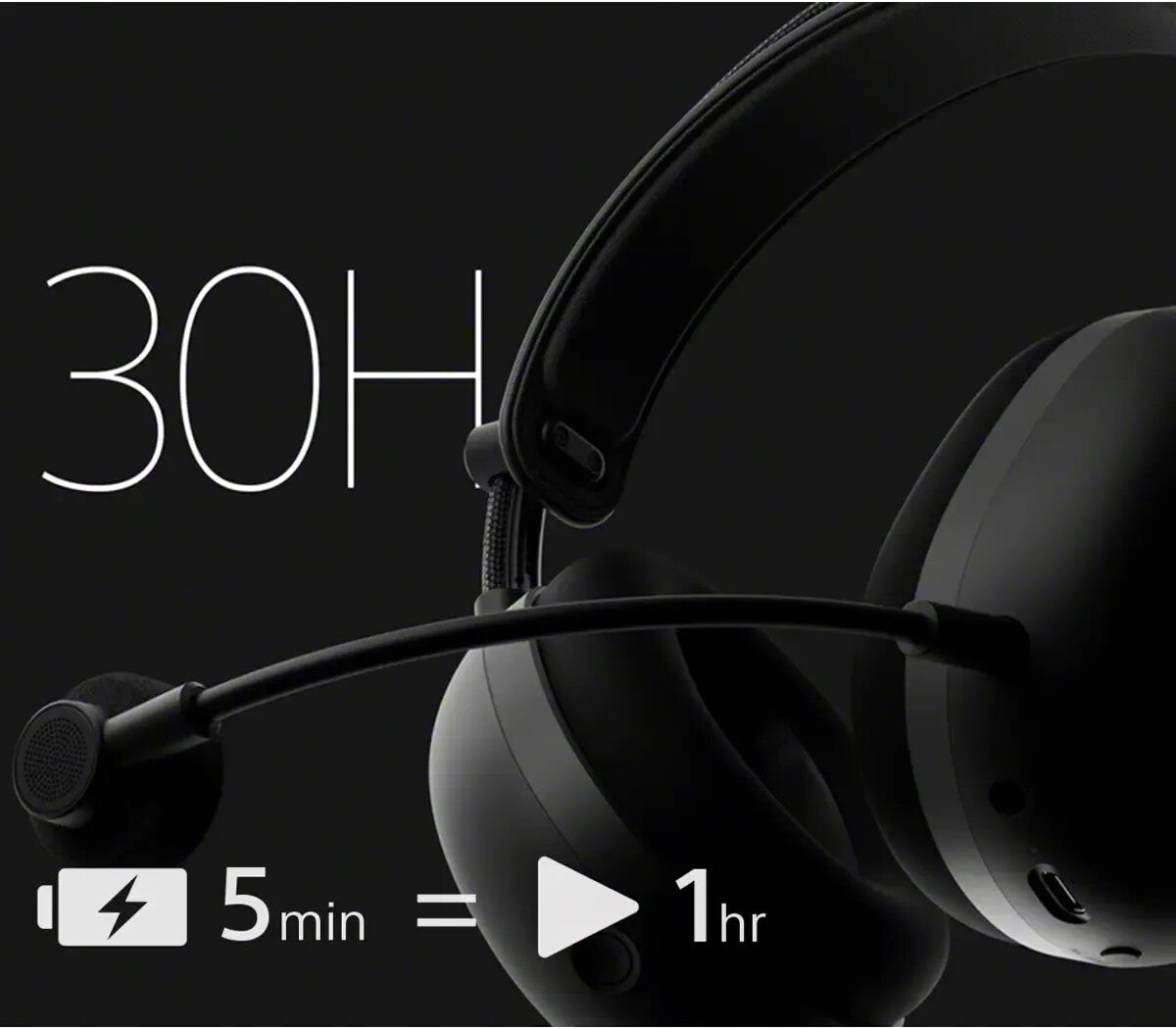 Get up to 30 hours of playtime on a full charge. And when you're low, just plug in and keep playing—plus, a quick 5-minute charge gives you up to 1 hour of play.²