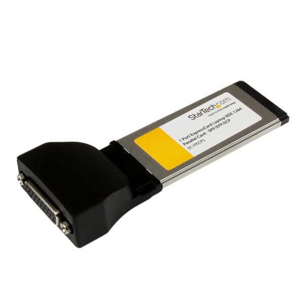 The EC1PECPS 1 Port ExpressCard Laptop Parallel Adapter Card turns an ExpressCard slot into an IEEE 1284 Parallel port, allowing you to connect parallel devices to a laptop computer. The ExpressCard Parallel card is PCI Express (x1) based, ensuring faster data transfer rates between host and peripheral as compared to a USB-based ExpressCard; providing a cost-effective way to bridge the compatibility gap between your laptop and legacy devices. A convenient solution for adding a parallel printer or scanner, simply insert the adapter (EC1PECPS) into an available 34mm or 54mm ExpressCard slot and connect your parallel device to the adapter’s SPP/EPP/ECP parallel port. The adapter card is WHQL certified, so driver installation is automated for a simple plug-and-play solution. Backed by a StarTech.com 2-year warranty and free lifetime technical support.
