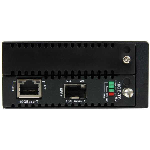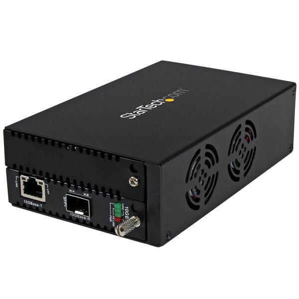 This 10GbE fiber media converter lets you scale your network using the 10Gb SFP+ transceiver that best suits your network type and distance requirements. It’s a cost-effective way to convert copper to fiber, or fiber to copper, and it integrates easily into a range of 10Gb network infrastructures.