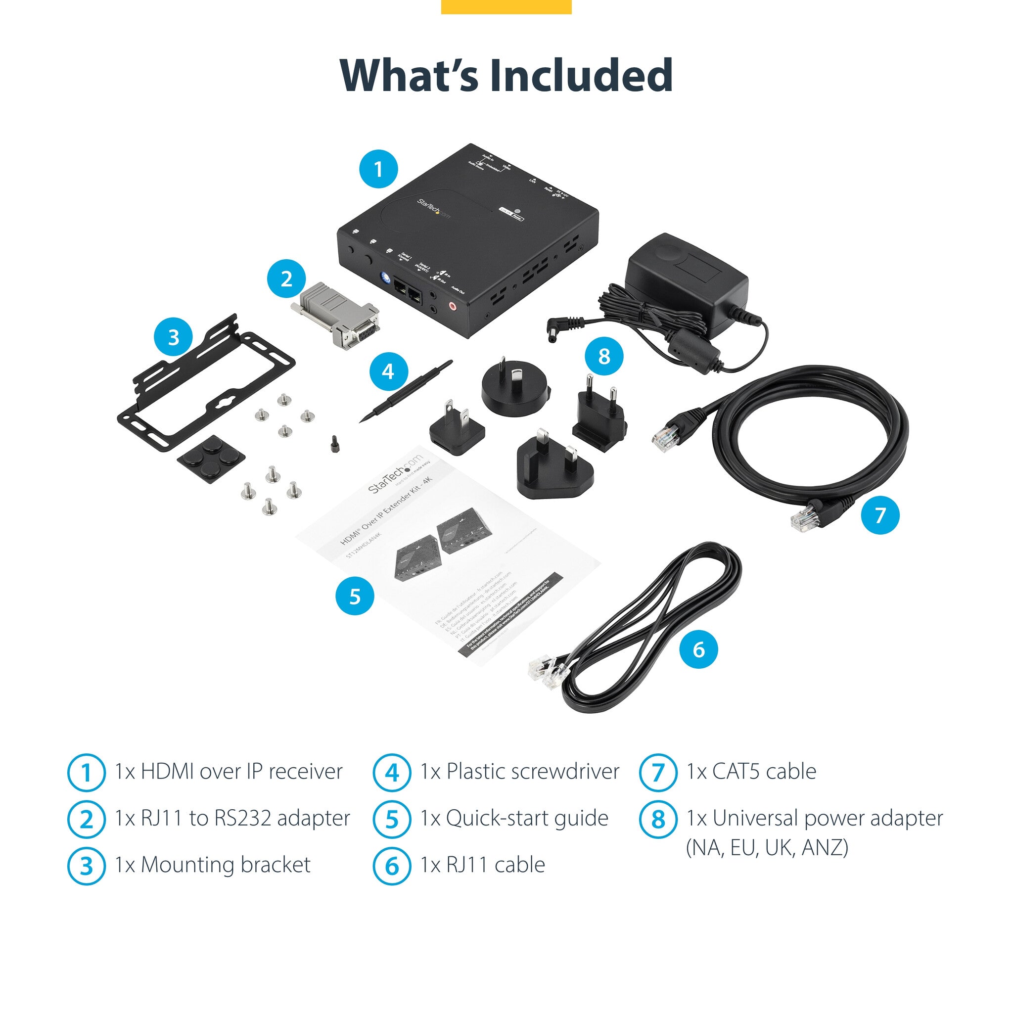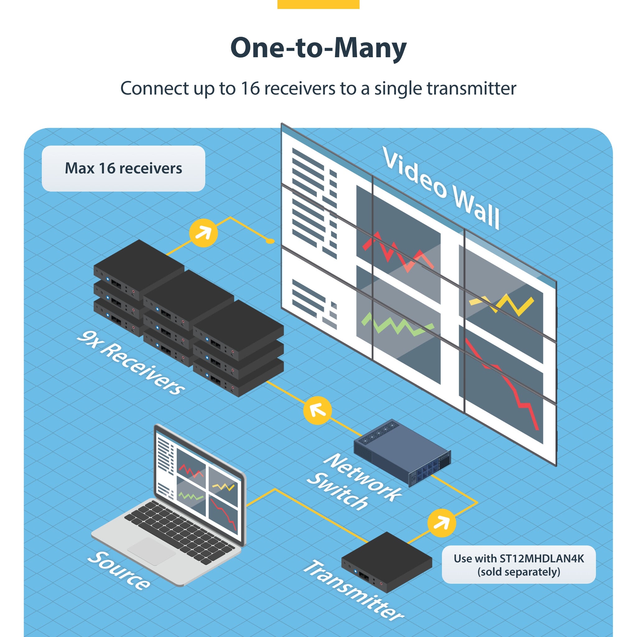 - Receiver for ST12MHDLAN4K: Extend your HDMI over IP Extender Kit (ST12MHDLAN4K) with this 4K receiver; Ideal for IT teams and system integrators building scalable, cost-effective and future-ready A/V systems without splitters or fixed extenders