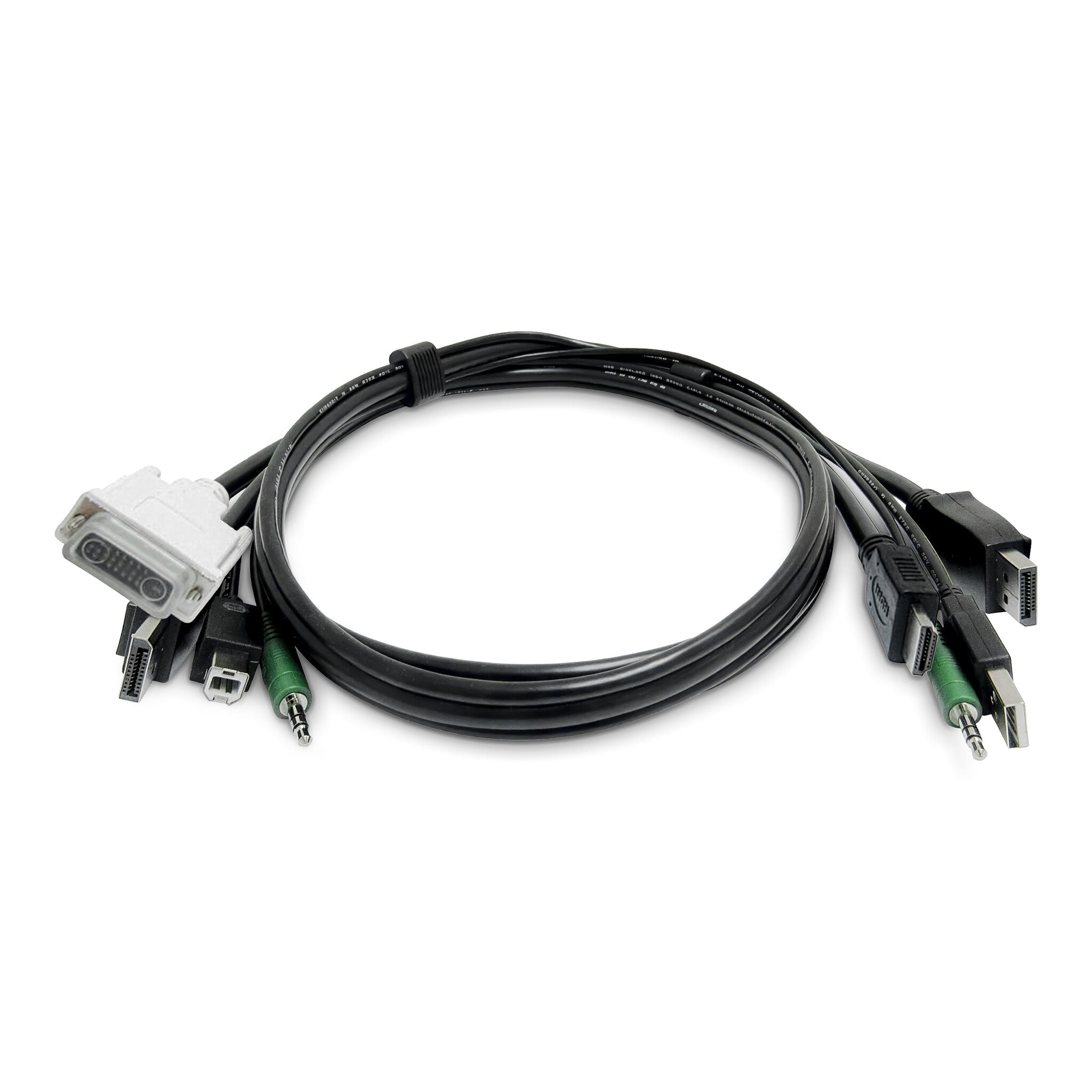 Combine HDMI, DisplayPort, USB, and 3.5mm audio connections into a single cable for connecting a computer to a DisplayPort/DVI KVM Switch