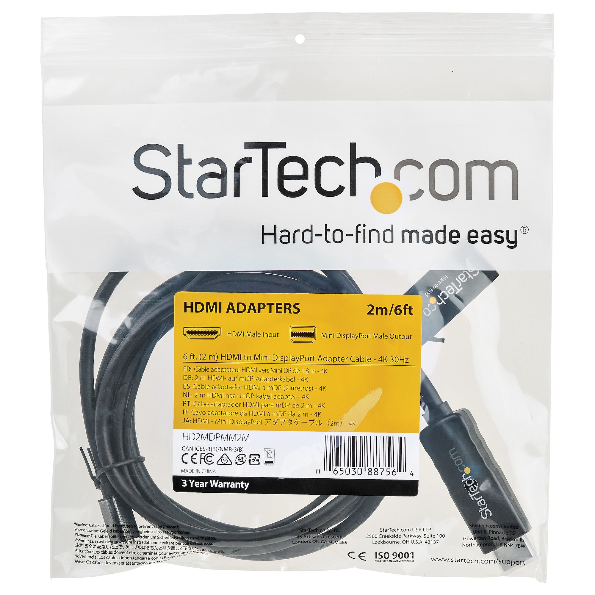 HD2MDPMM2M is backed by a StarTech.com 3-year warranty and free lifetime technical support.