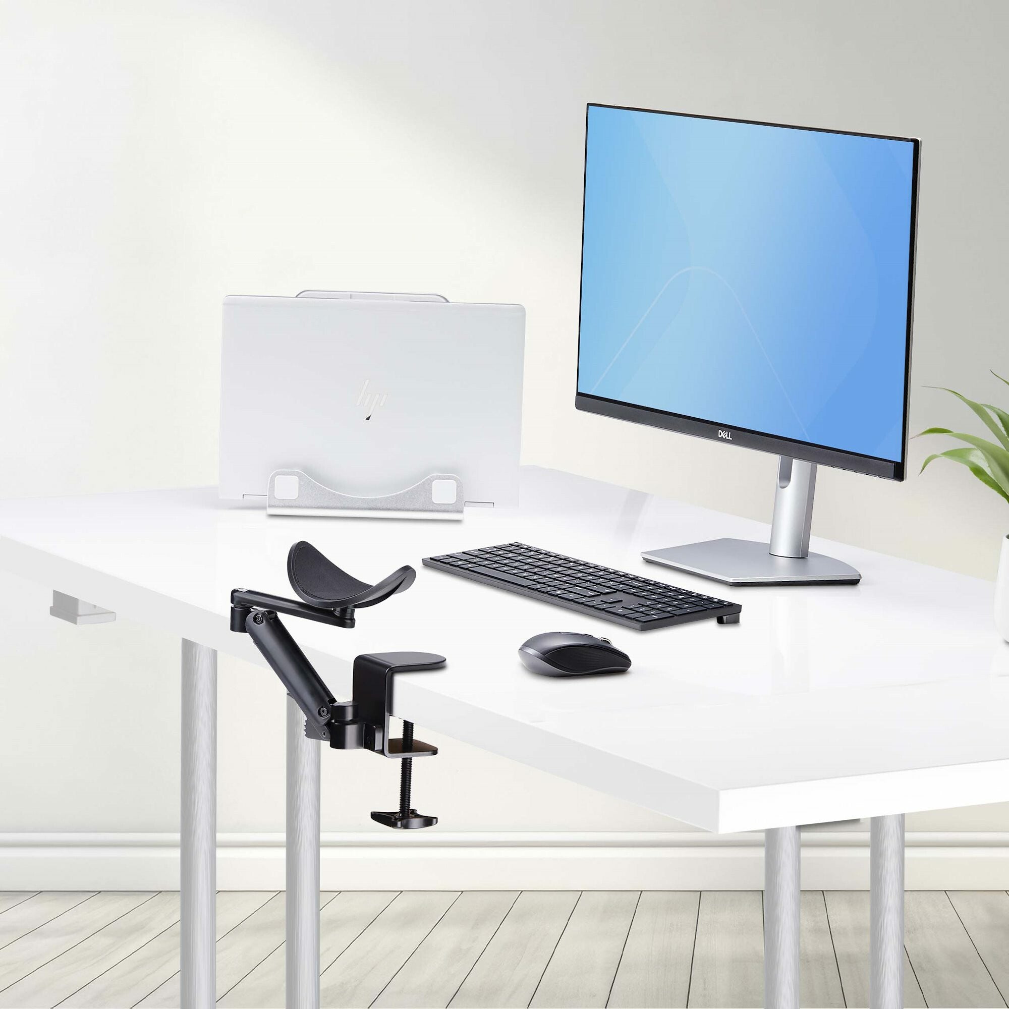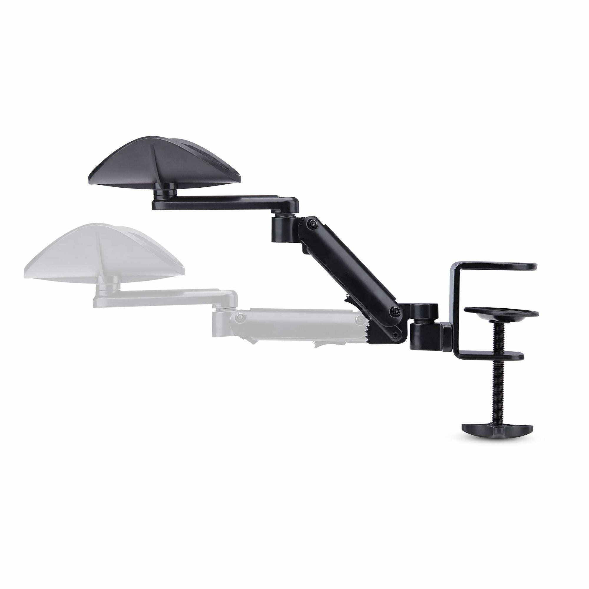 • ERGONOMIC SUPPORT: Enhance comfort and posture by reducing stress on the shoulder, arm, and wrist while using laptops or desktop computers for extended periods; Adjustable arm rest supports swivel motion to transition between mouse and keyboard