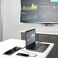 The A/V module simplifies connectivity with automatic switching and conversion. The module lets you present content from your HDMI, DP or VGA laptop on an HDMI display or projector, without the hassle of menu and input selections. And, it automatically switches to the most recently connected or powered-on laptop.