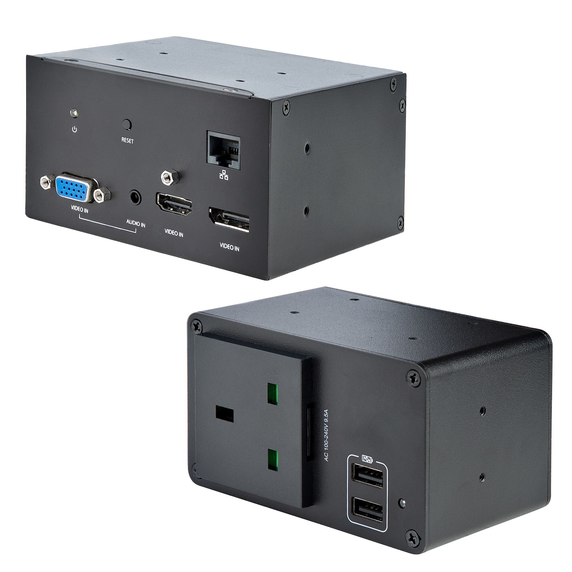 • IN-TABLE AV DOCKING SOLUTION: Setup an in-desk or in-table AV station offering connectivity for HDMI/DisplayPort/VGA laptops to diplays with HDMI/DP inputs; Supports up to 4K at 30Hz / GbE / 3.5mm mic input and 3.5mm stereo audio output