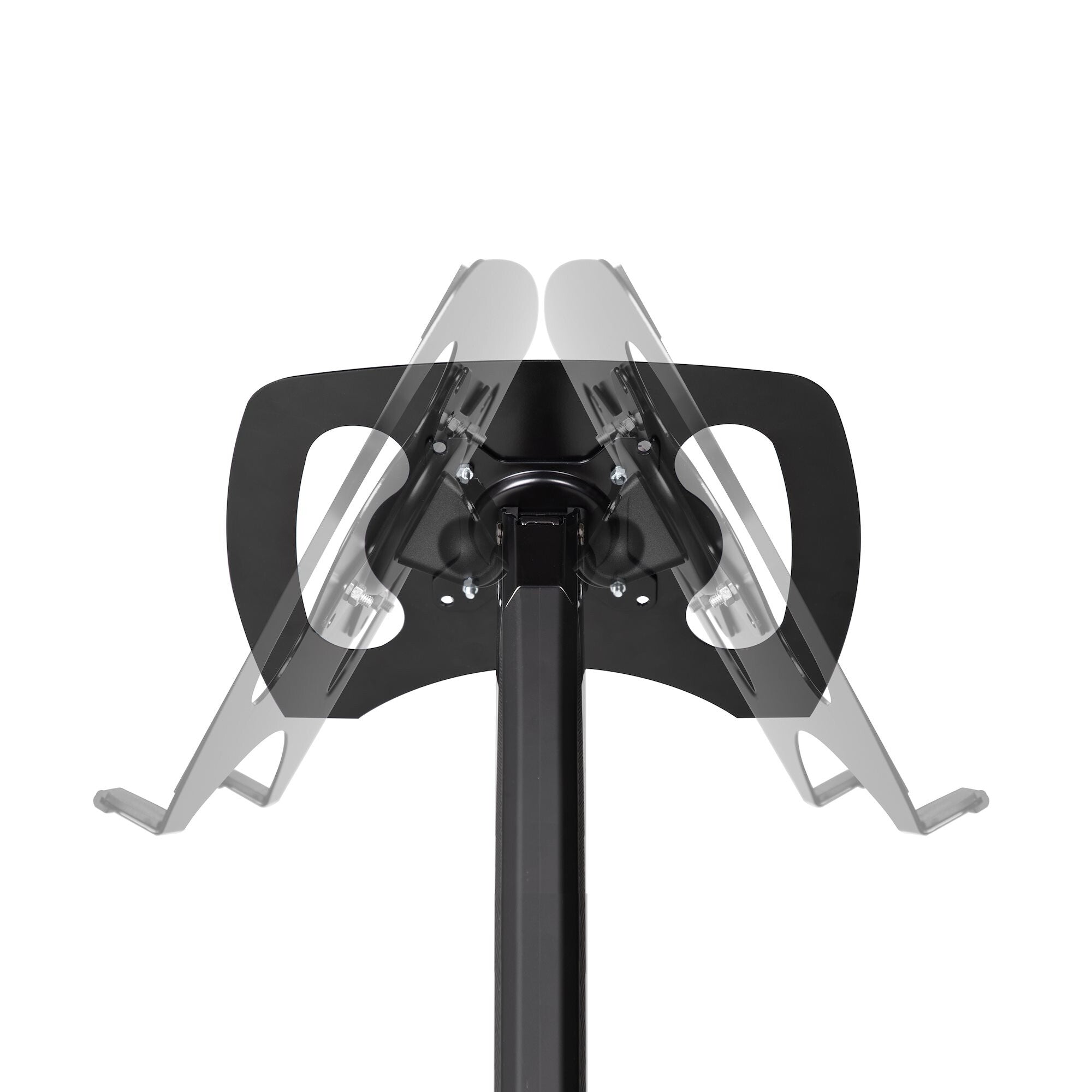 - FULL RANGE OF MOTION: This articulating monitor arm w/ laptop tray offers -85/+90° vertical tilt, -90/+90° horizontal swivel & -180/+180° rotation (portrait/landscape); 360° arm rotation; Notebook will need additional security at steeper angles (not incl)