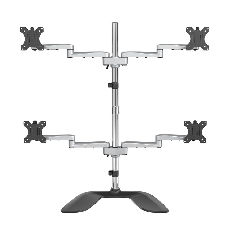 Boost productivity and customize your workspace with this quad-monitor stand, suspending four monitors above your desk. Enjoy optimum viewing with four articulating monitor arms, providing a wide range of motion. The free-standing base gives you flexibility in placing your setup within your workspace.