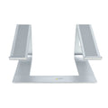 The elegant laptop riser features a silver anodized finish with 0.19in (5mm) thick aluminum parts to ensure its durability. The two support arms create an effective surface area of 8.26x10.23 in (210x260 mm) and provide generous room underneath for passive cooling and airflow, and can be used to store a keyboard, mouse, or other accessories and peripherals when they are not in use.